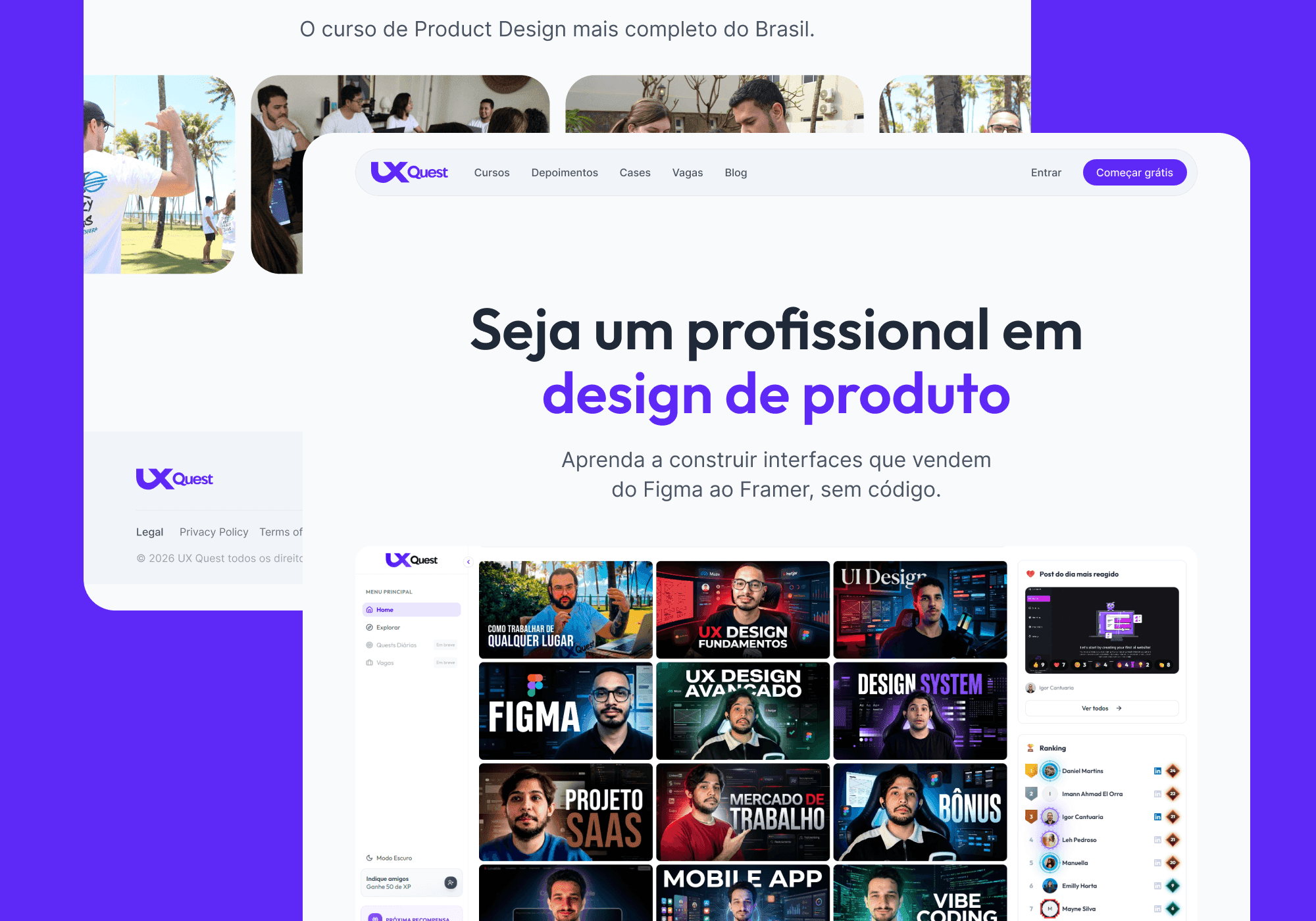 Design funcional implementado em Framer, pronto pra receber tráfego e ser metrificado.
