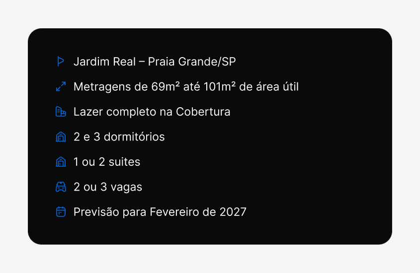 Este projeto foi desenvolvido para posicionar o corretor como referência local, deixando claro desde o primeiro contato que o atendimento é focado apenas em Praia Grande.